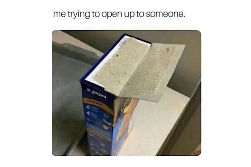 One meme that hits the spot for me shows a box of mac and cheese with the lid half-torn off. Underneath the caption reads: “Me trying to open up to someone.” Most people who’ve opened cardboard boxes have had this experience. They try to open the box, but only the top layer of cardboard peels away, leaving the box just as tightly sealed shut as it was before they tried to open it.