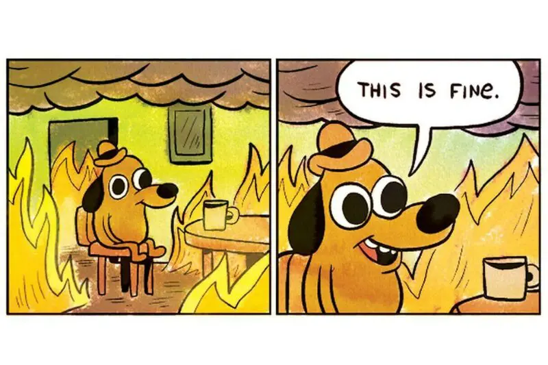The “dog on fire” meme has been with us for over a decade, surviving more crises than most of us care to count. His blank smile has carried us through countless, collective meltdowns, which is exactly why he fits so seamlessly into therapy sessions focused on anxiety and resilience. KC Green, the creator of the meme, drew this while starting antidepressants, and the dog reflects his own ambivalence and uncertainty about turning to medication. That origin story only deepens its impact: what began as one person’s vague, dark joke has become universal shorthand for the chaos we sit in and our tendency to smile through it, acknowledging that sometimes “fine” is the best we’ve got.