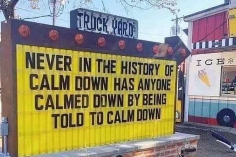 One of my all-time favorites is this one: “Never in the history of calming down has anyone ever calmed down by being told to calm down.” It’s resonated with me for a long time on a number of levels, and it’s a line I use in workshops and in therapy.