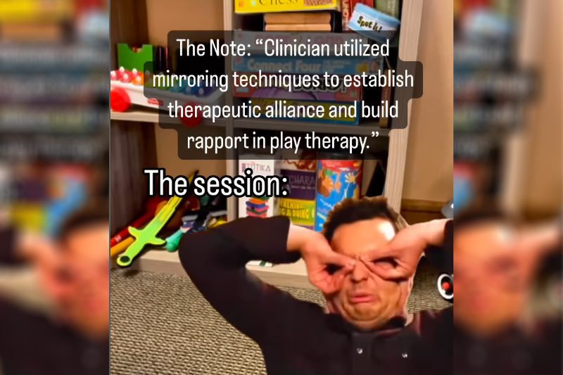 One trend I loved featured therapists typing notes with on-screen text: “Born to write _______” vs. “Forced to write _______.” The format nailed one of the unique tensions in our work. We thrive on authenticity and vulnerability in session, but then we have to translate those moments into clinical jargon so the “insurance gods” will approve them. The comments (“relatable!” “I feel seen!” “Omg this is hilarious!”) made it clear. Humor was the fastest way to therapists’ hearts.